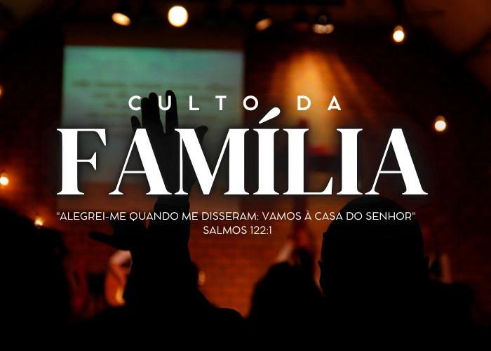 TODO DOMINGO, SEMPRE AS 19:30 HORAS TEMOS O NOSSO CULTO DA FAMÍLA. ONDE AS FAMÍLIAS SE REUNÉM PARA CULTUAR E AGRADECER A DEUS PELA SEMANA VIVIDA E PEDIR BENÇÃOS PARA A NOVA SEMAMANA QUE SE INICIA. VENHA RECEBER A SUA BENÇÃO.